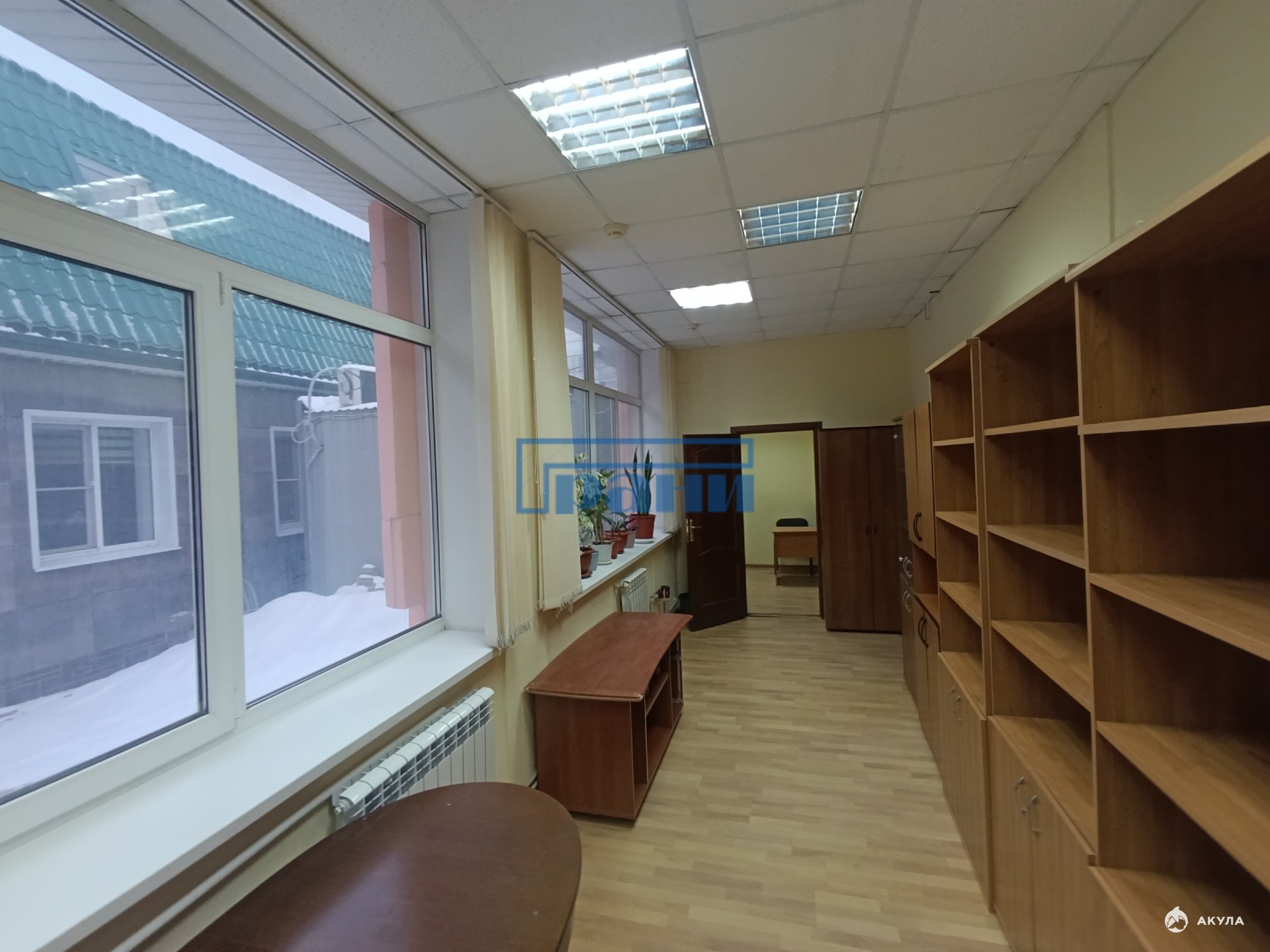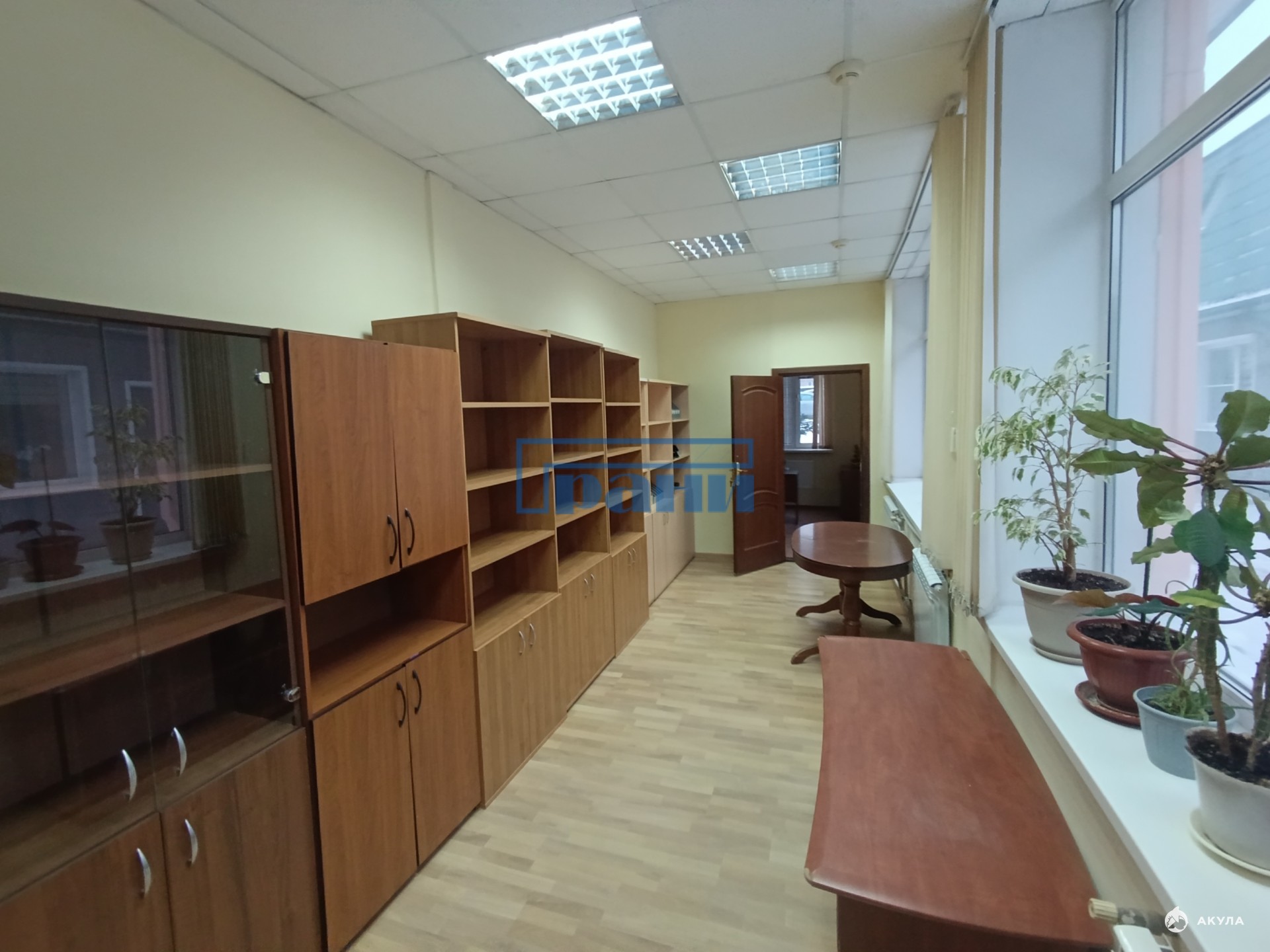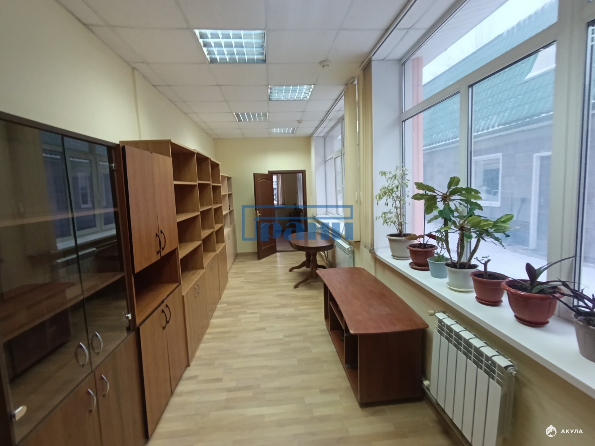 Большие окна, светлое помещение;