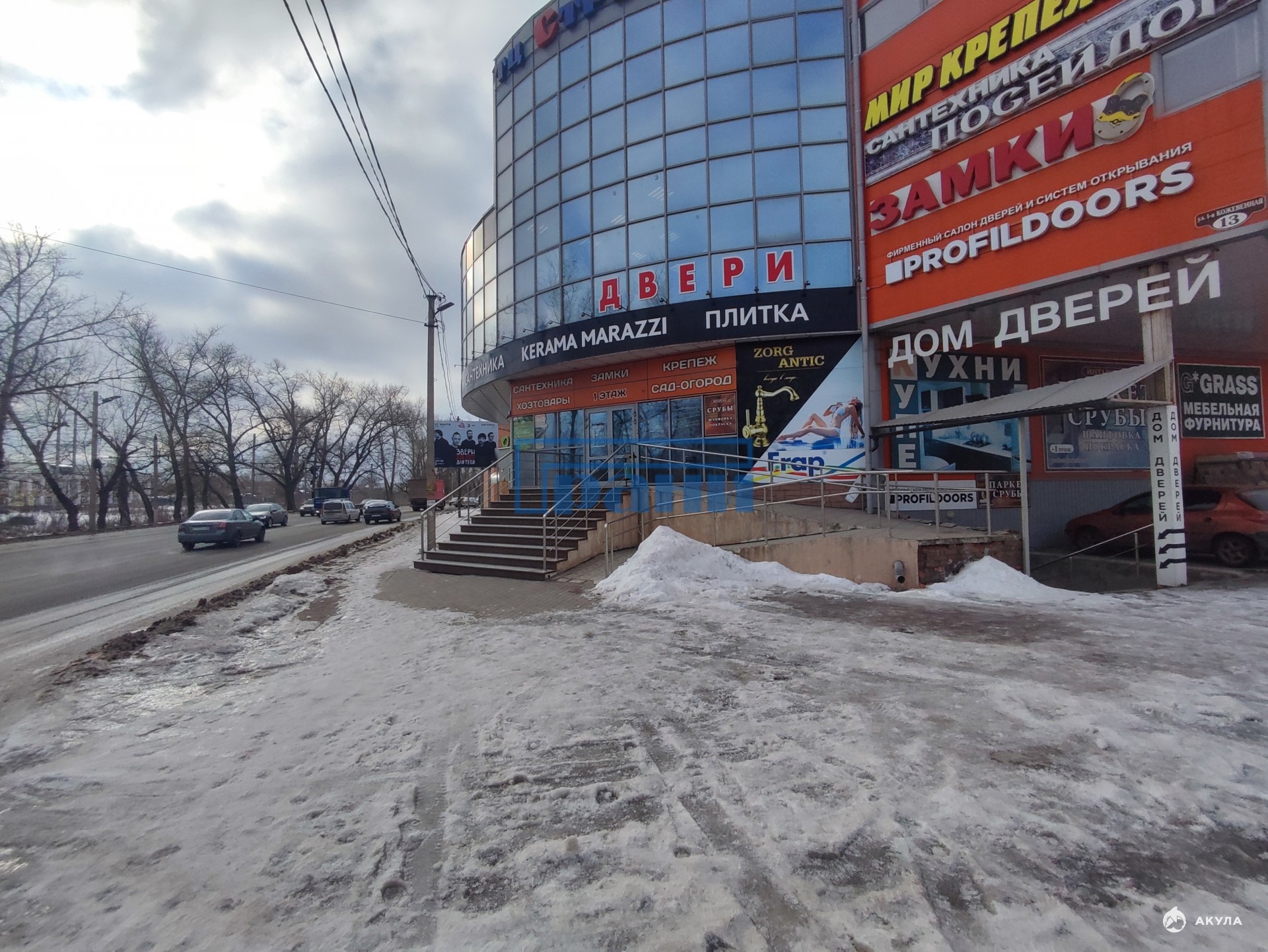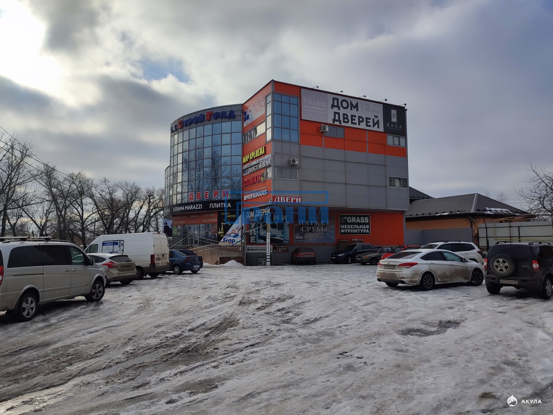 Здание ТЦ расположено вдоль дороги на видном месте;