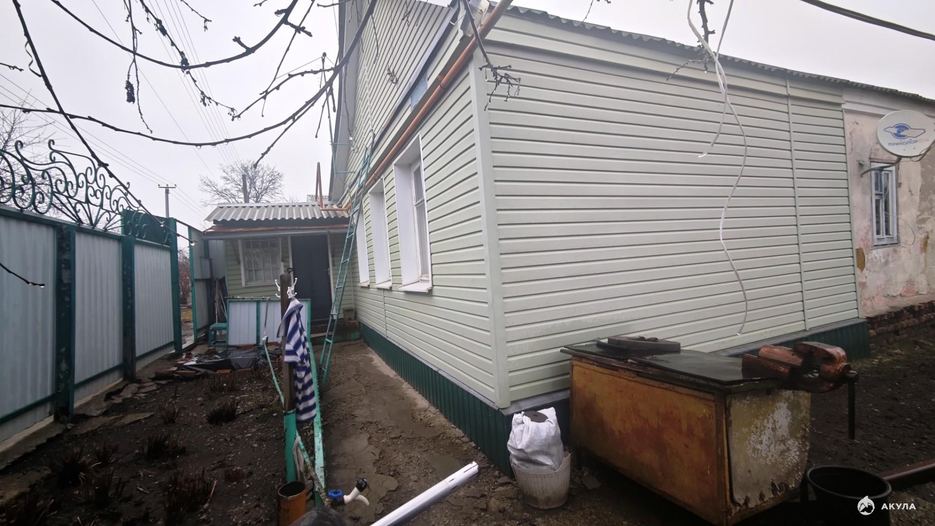 Часть дома отделана под сайдинг.