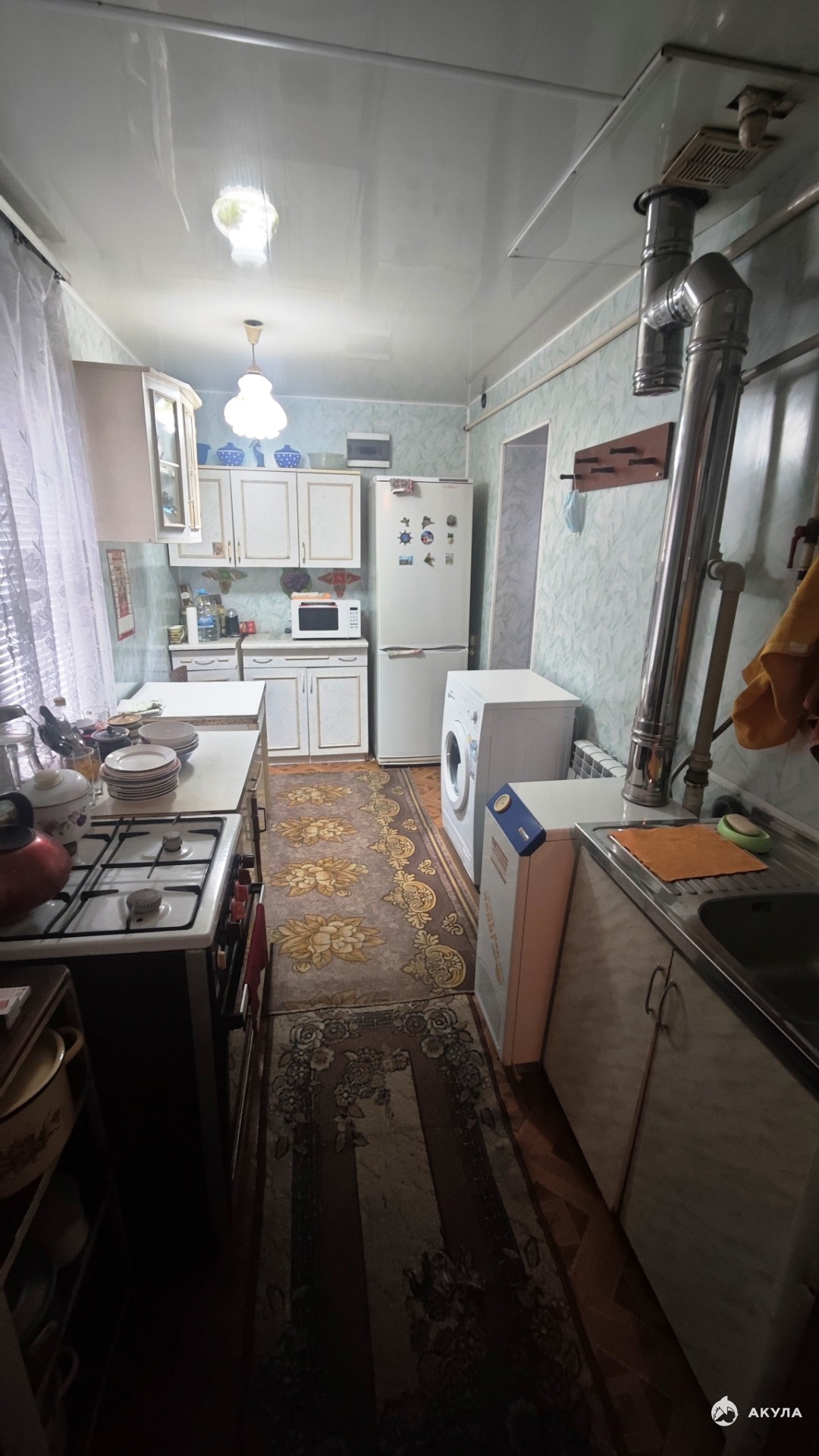 Установлен газовый котел, заменена система отопления, биметаллические радиаторы, газовая колонка. Установлена душевая кабина.