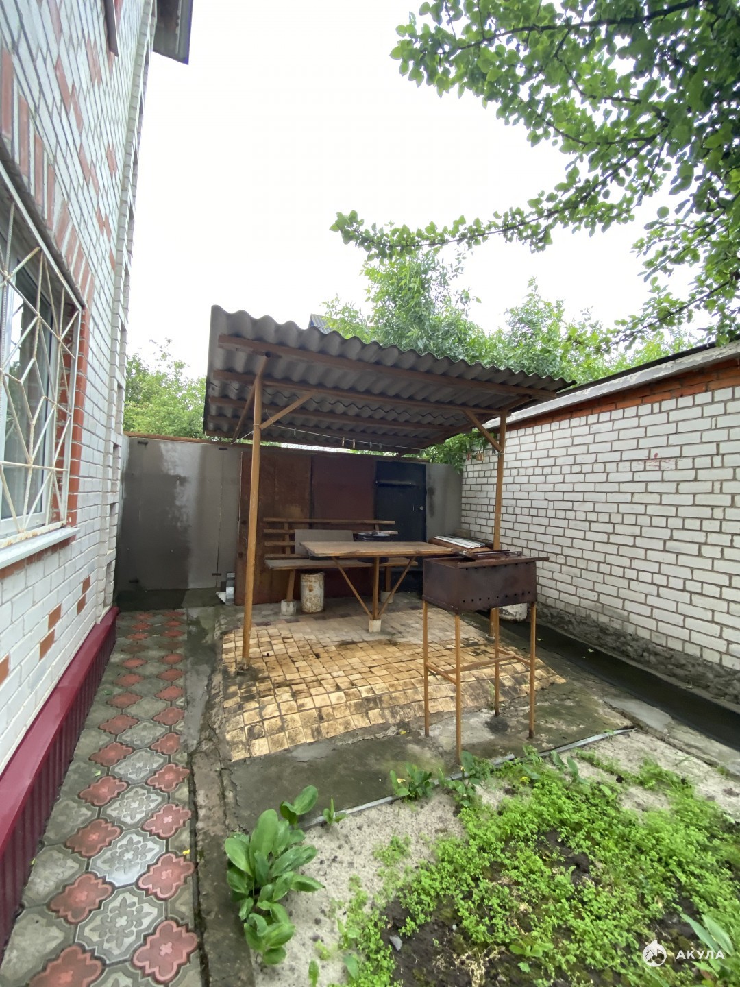 Участок 9 соток в собственности имеет ровные границы.За домом огород с плодовыми деревьями и кустарниками, обработан и ухожен.Есть теплица из поликарбоната. Двор вымощен декоративным камнем .Есть мангал и зона барбекю.Сарай кирпичный с погребом для инвентаря. Отдельно стоящий гараж 4, 56 м со смотровой ямой. Высокий кирпичный забор по фасаду.