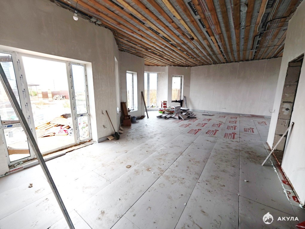 Участок огорожен современным забором.Начало постройки дома 2023 г.Фундамент ленточный глубина 1, 20м ширина 40см.Стены газобетон Аэробел 400ммОблицовка Дагестанский кирпич. Смотрится он просто потрясающе.Крыша - мягкая кровля, утеплитель минеральная вата 200 мм, деревянные балки 50/200.Внутри стены подготовлены под покраску или оклейку обоев.Теплый пол по всему первому этажу. (Сделана качественная стяжка полу+утеплитель+теплый пол).Огромные витражные окна, наполняют Дом колоссальным количеством света и создают неповторимую атмосферу в доме.Электричество в доме. Разведено (распределительные коробки на освещение и розетки).Окна пластиковые (двухкамерные) PROPLEX.Своя скважинаСвой септик