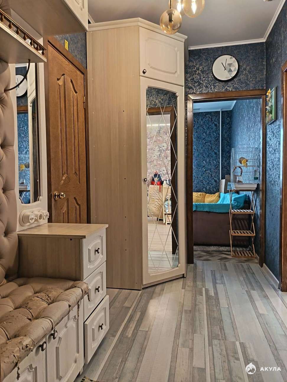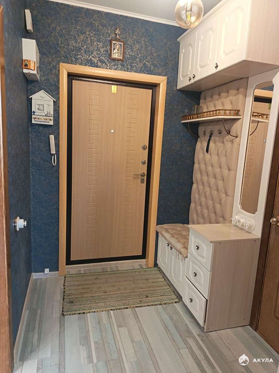 Новому собственнику в подарок остается кухонный гарнитур, гарнитур в ванной, гардеробная система, прихожая.