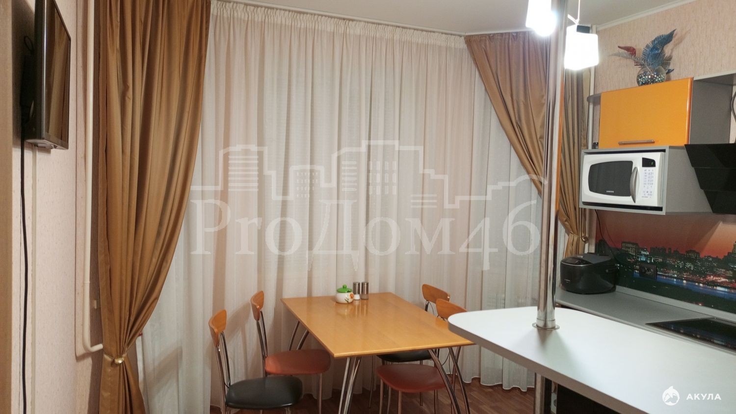 - красивый панорамный вид из окон, изящные портьеры, дополнительно установлены жалюзи
