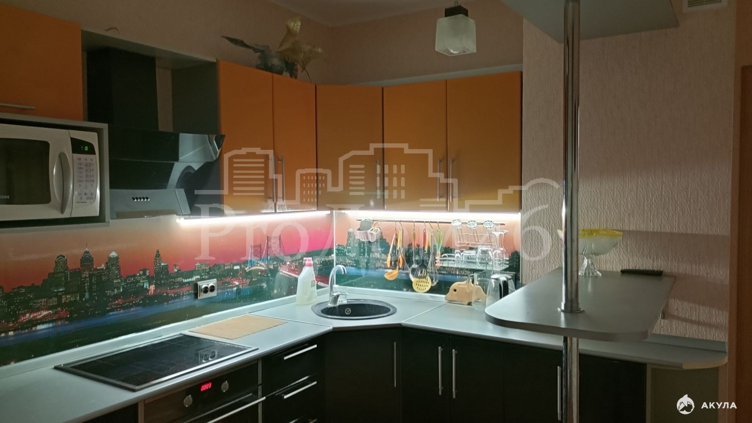 - современная функциональная кухня с встроенной бытовой техникой и ТВ