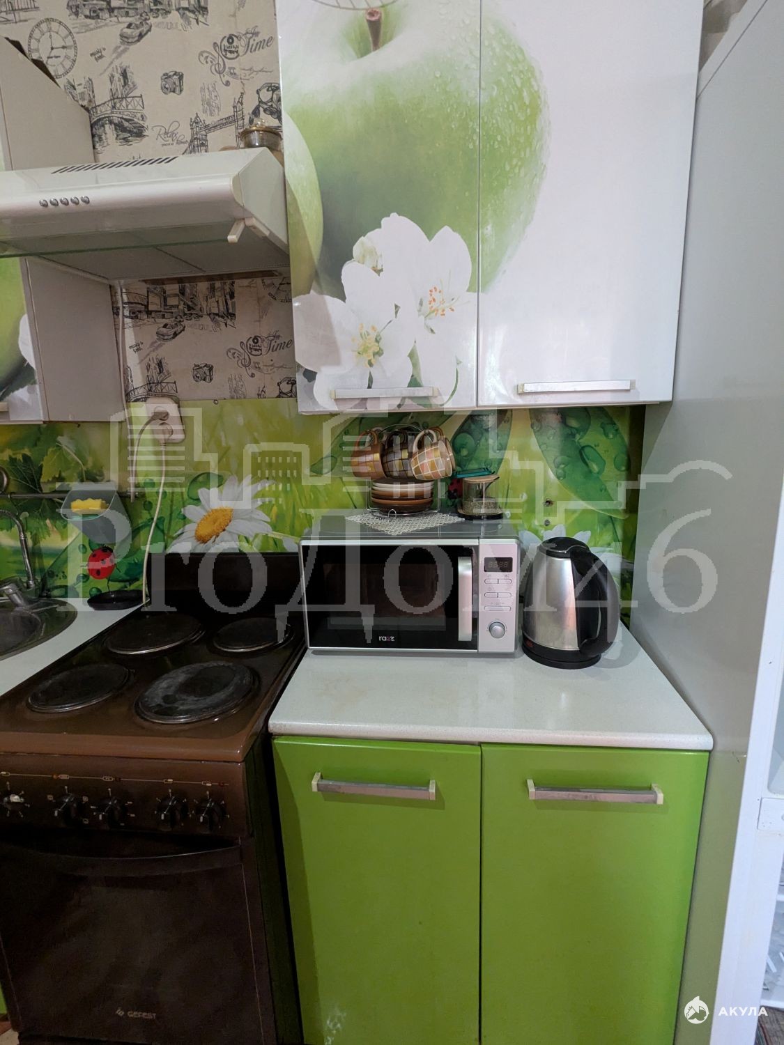 Для проживания есть кухонный гарнитур, стол, стулья, стиральная машина, холодильник, микроволновая печь, чайник, диван, стенка, диван-слоник и угловой диван. Квартира расположена в здании общежития.