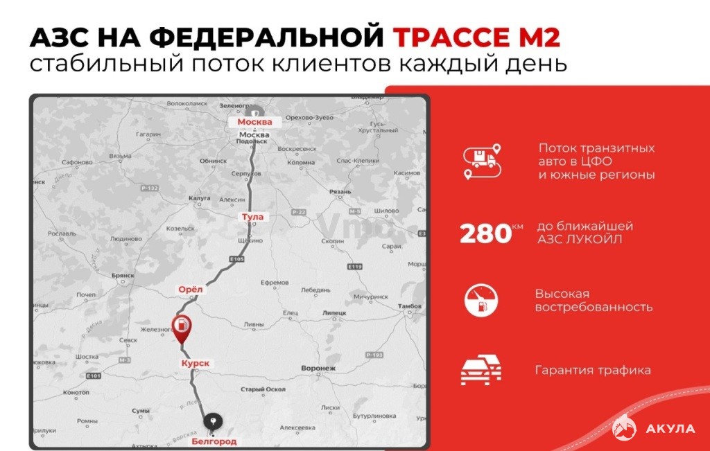 Арт. 88453355. Предлагаю Вам рассмотреть приобретение АЗС федеральная трасса М2 Крым Курская область Верхний Любаж
